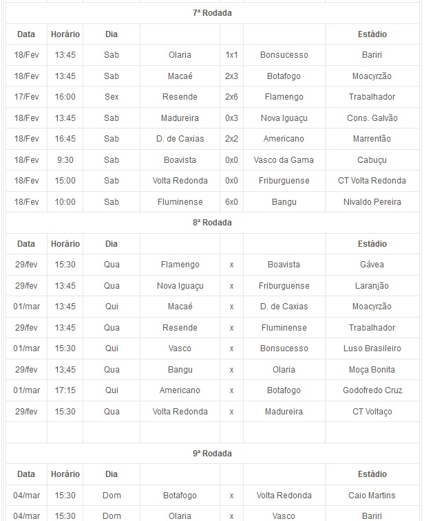 Os vascaínos empataram com o Boavista por 0 a 0 na última rodada. Depois de enfrentarem o Bonsucesso, o Olaria será o adversário do Gigante da Colina, pela 9ª rodada, no dia 4 de março. O jogo será na Rua Bariri.