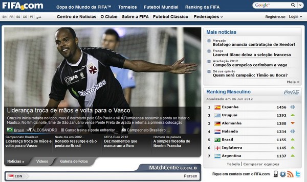 A liderança do Campeonato Brasileiro esteve nas mãos de três clubes na abertura da sétima rodada da competição, neste sábado: do Cruzeiro, passou para o Fluminense e terminou a noite nas mãos do Vasco. O time mineiro, que fechou a sexta jornada no topo sem perder uma partida sequer, perdeu a invencibilidade diante do São Paulo em casa e cedeu a ponta ao Tricolor das Laranjeiras, que bateu o Náutico nos Aflitos e é o último invicto do Brasileirão 2012. No fim do dia, entretanto, o time de São Januário tomou a liderança das mãos dos rivais cariocas ao derrotar a Ponte Preta de virada em seu estádio. Confira com o FIFA.com os detalhes dos três confrontos que iniciaram mais uma jornada da competição nacional.