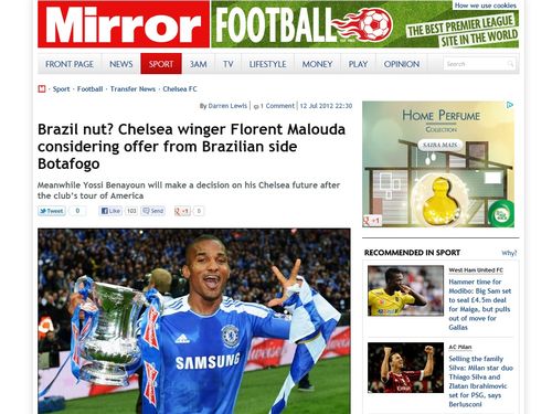 De acordo com o tabloide britânico Mirror, o meia francês Florent Malouda negocia com o Botafogo para jogar o Campeonato Brasileiro. O jogador de 32 anos está há cinco temporada no Chelsea e disputou as últimas duas Copas do Mundo pela seleção francesa. Ele esteve também no elenco que participou da Eurocopa deste ano, disputada na Ucrânia e Polônia.