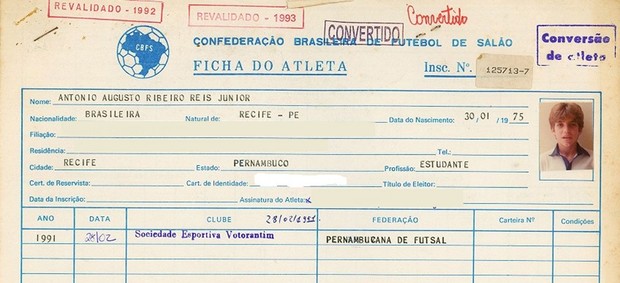 No início de setembro, a Confederação Brasileira de Futsal (CBFS) divulgou os documentos de inscrição nas federações estaduais de alguns jogadores, que se tornaram grandes craques do futebol brasileiro e mundial. Entre eles, Ronaldo Fenômeno, Neymar e Adriano. Agora, o baú do futsal se abriu novamente e outras fichas foram reveladas, mostrando que a quadra serviu e ainda serve como base para o começo de grandes carreiras. Você pode conferir o registro de Ronaldinho Gaúcho, Paulo Henrique Ganso, Robinho, Kaká, Juninho Pernambucano e outras feras.