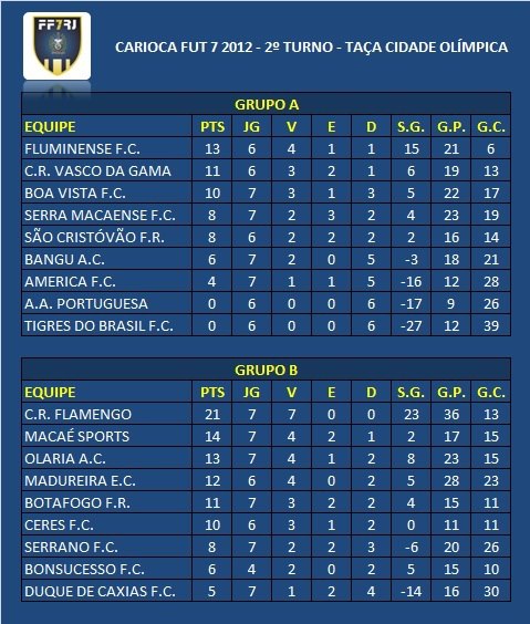 Completaram a oitava rodada da Taça Cidade Olímpica, mais quatro jogos na Arena Rio Fut7, com duas vitórias, dois empates e apenas 19 gols marcados.