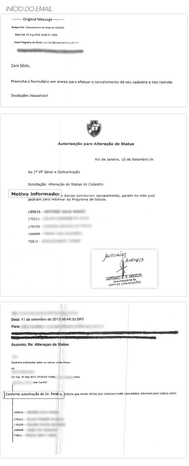Outros novos eleitores pediram para não se identificar, mas contaram suas histórias e encaminharam e-mails com os pedidos de desligamento que fizeram ao clube depois de descobrirem que haviam se tornado sócios. Um deles disse que, junto com a noiva, aceitou entrar como associado sob a condição de terem suas mensalidades bancadas pelo grupo de Eurico Miranda. Ele contou, no entanto, que não pretende votar no ex-presidente do Vasco. Os nomes dele e da mulher foram identificados e confirmados na listagem de novos sócios do mês de abril. Na imagem enviada pelo novo eleitor vascaíno, no dia 18 de agosto, as mensalidades estavam sendo pagas em dia.