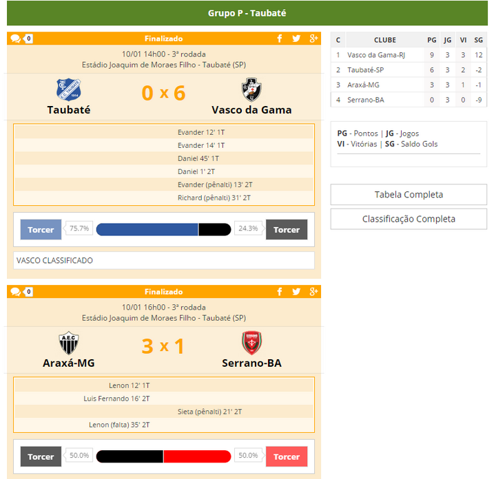 Fonte: NETVASCO (texto), Futebol Interior (tabela, classificação), GloboEsporte.com (próximo jogo)