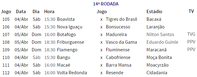 Fonte: NETVASCO (texto), Futrio (resultados e autores dos gols), GloboEsporte.com (classificação), FFERJ (artilharia e próximos jogos)