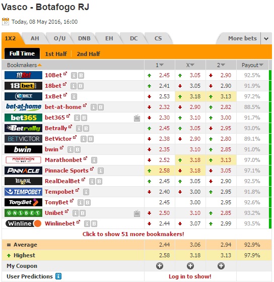Fonte: NETVASCO (texto), OddsPortal.com (imagem)