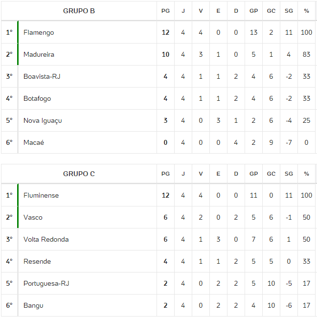 No Grupo B, Flamengo e Madureira já estão classificados; No Grupo C, o Fluminense já está classificado em 1º lugar, enquanto Vasco, Volta Redonda e Resende brigam pela 2ª vaga.