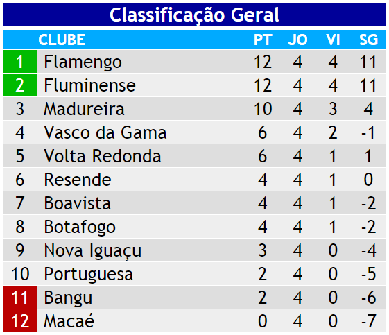 Terminada a 4ª e penúltima rodada da 1ª fase da Taça Guanabara, o Vasco, que foi derrotado pelo Volta Redonda por 1 a 0, segue em 2º lugar em seu Grupo, o C, e continua na zona de classificação às semifinais. Uma vitória contra a Portuguesa na próxima rodada garante o Gigante da Colina no mata-mata devido ao critério do número de vitórias.