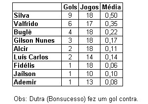 7-Luís Carlos, (14-Ademir), 9-Valfrido,10-Silva e 11-Gilson Nunes. Técnico: Tim.