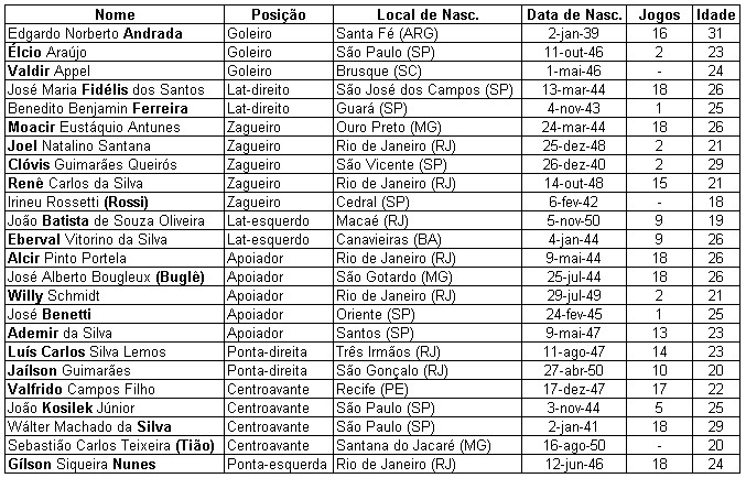 Nei Conceição, Careca; Zequinha, Nilson (Ferreti), Jairzinho e Paulo César Caju. Técnico: Zagallo.