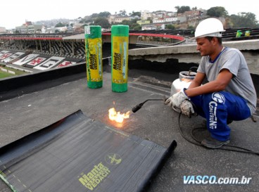 Para seguir a linha de modernização de todas as estruturas de São Januário, o Vasco iniciou nessa semana o projeto para reformar as marquises da Colina Histórica. Em parceria com a empresa Vedacit, o clube está colocando mantas de impermeabilização na parte de cima da marquise do caldeirão, para assim evitar possíveis problemas com infiltrações.