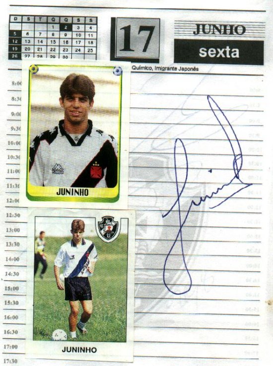 | Autógrafo de Juninho Pernambucano obtido no jogo contra o Criciúma em 24/09/1995 Enviado por Miguel Ramos.