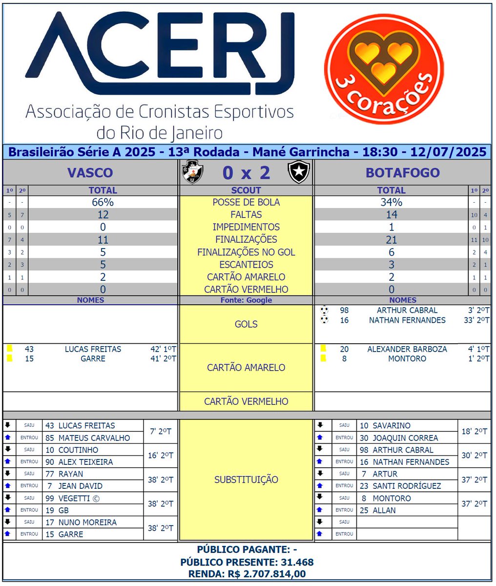 Scout Final de Vasco e Botafogo pela 13ª Rodada do Campeonato Brasileiro 2025 no Mané Garrincha (Fonte: Google) #Acerjinforma #brasileirao2025 #VASxBOT #VascodaGama #Botafogo @Brasileirao @VascodaGama @Botafogo