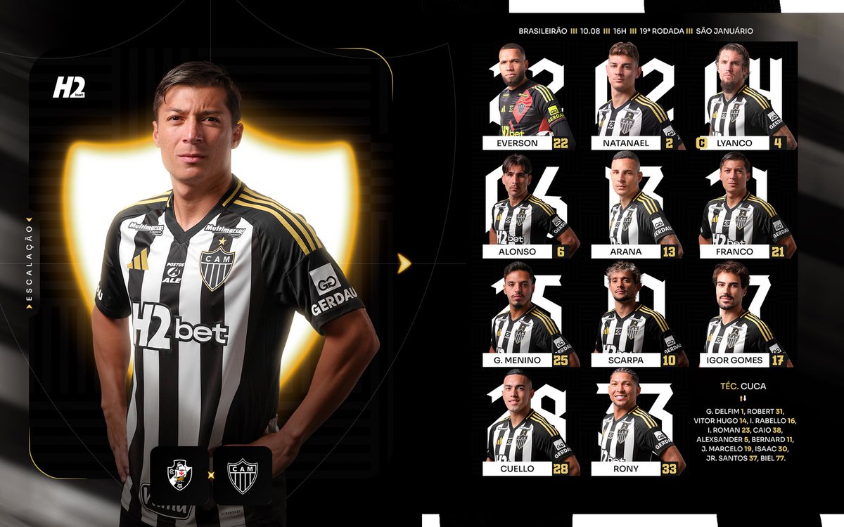 📋 GALO ESCALADO! Veja a nossa escalação para enfrentar o Vasco, em São Januário, pela 19ª rodada do Brasileiro!