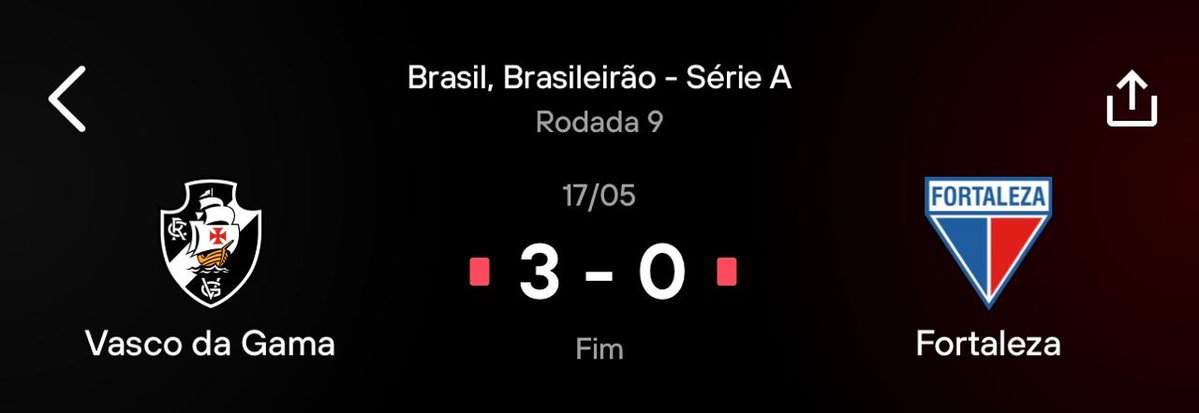 A última vez que o Vasco ganhou em São Januário foi contra o Fortaleza, na 9ª rodada, no dia 17 de maio.