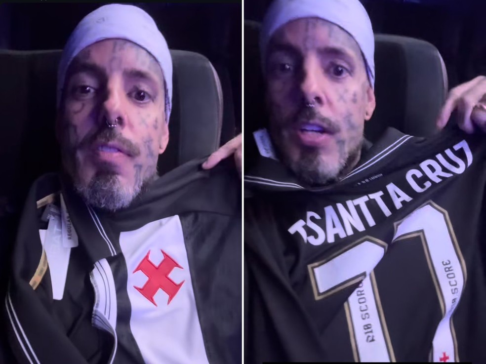Tico Santa Cruz contou que estava usando uma camisa nova do Vasco ao assistir ao jogo deste domingo (17) e que ela deu sorte de verdade! "Essa camisa do Vascão, número 77. Ano do meu nascimento e um ano glorioso do Vasco. Foi a camisa da sorte! Já começou com 6X0", comemorou.