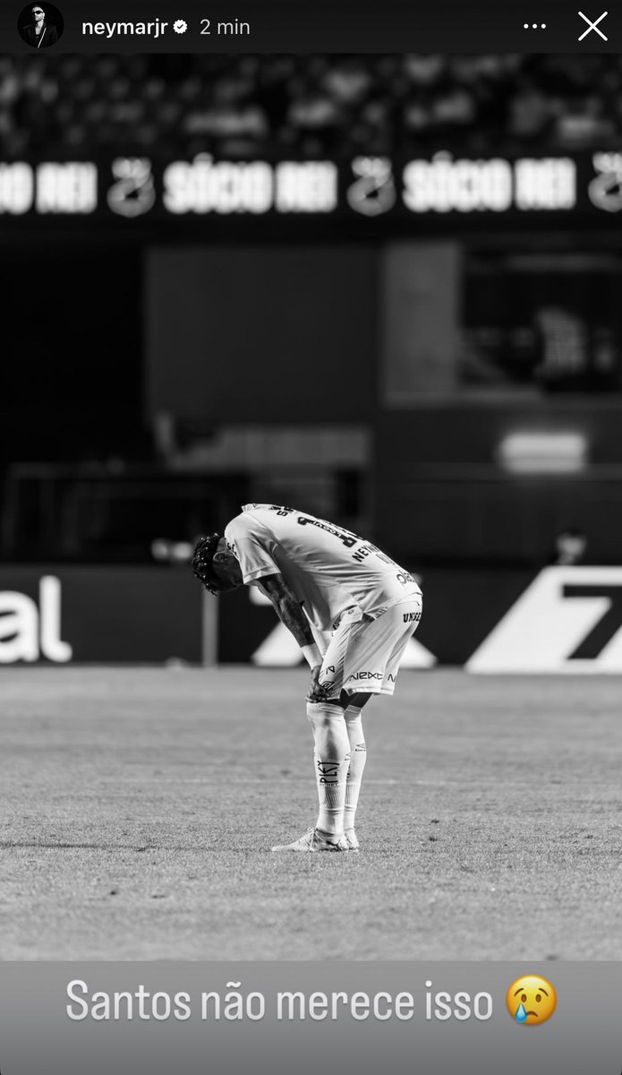 Neymar posta em seu Instagram após goleada para o Vasco: 'Santos não merece isso'