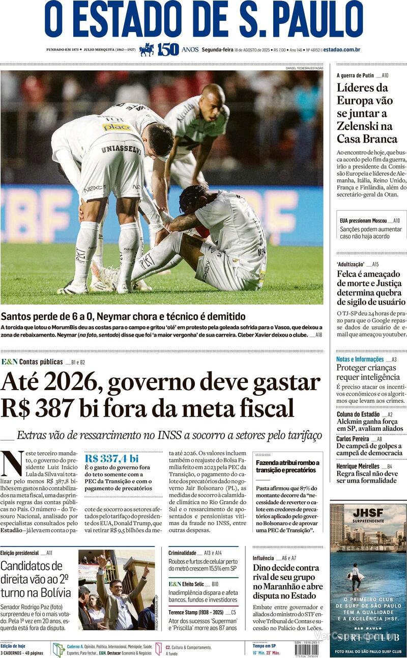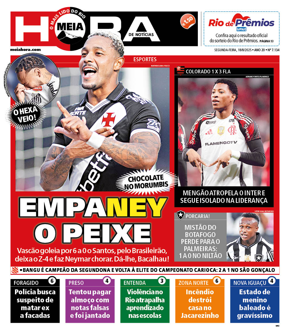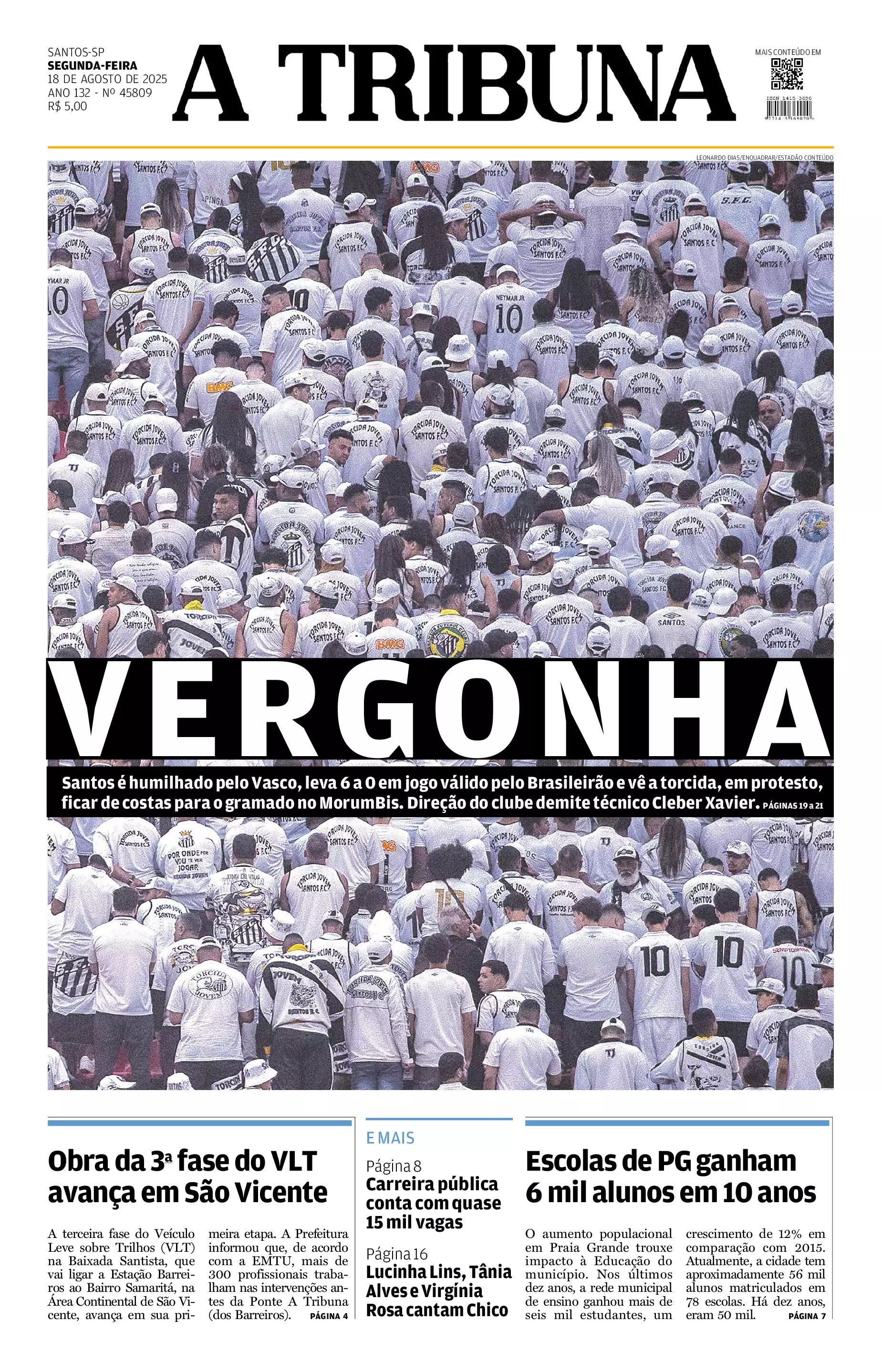 Veja as capas dos jornais após Santos 0 x 6 Vasco