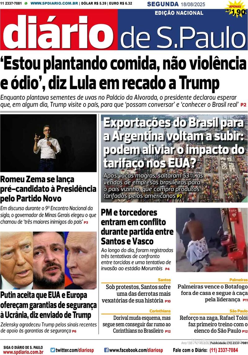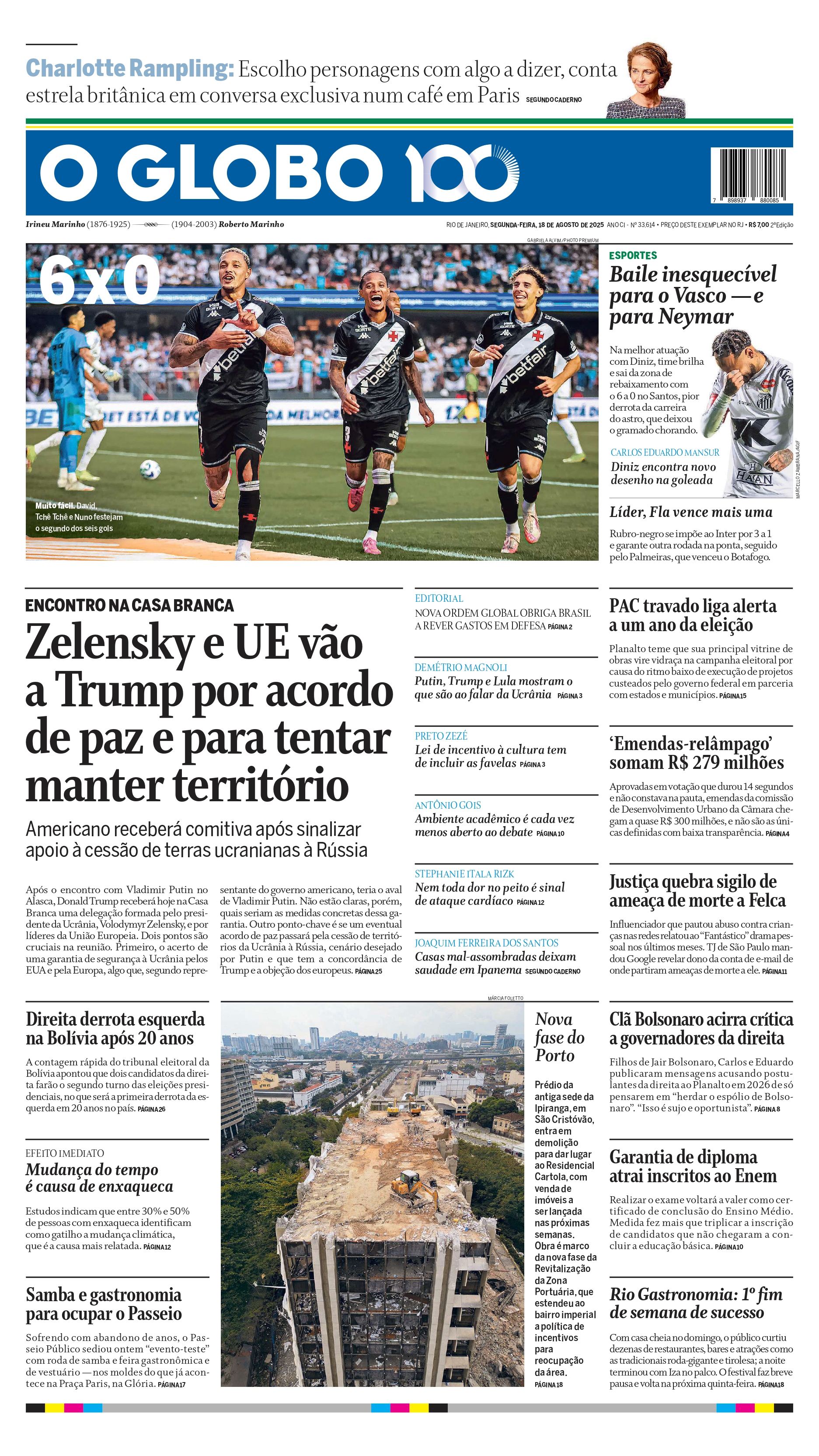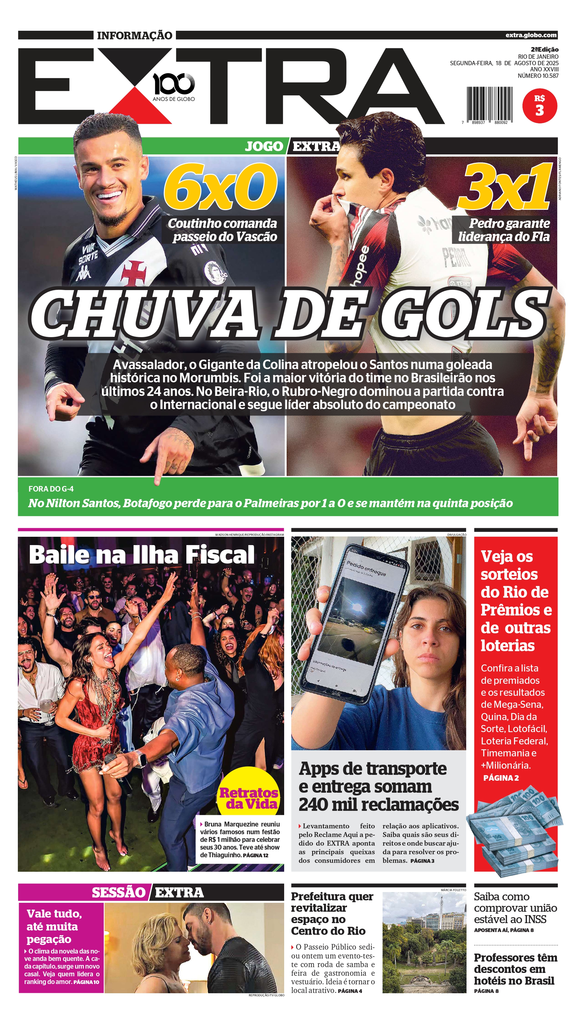 Veja as capas dos jornais após Santos 0 x 6 Vasco