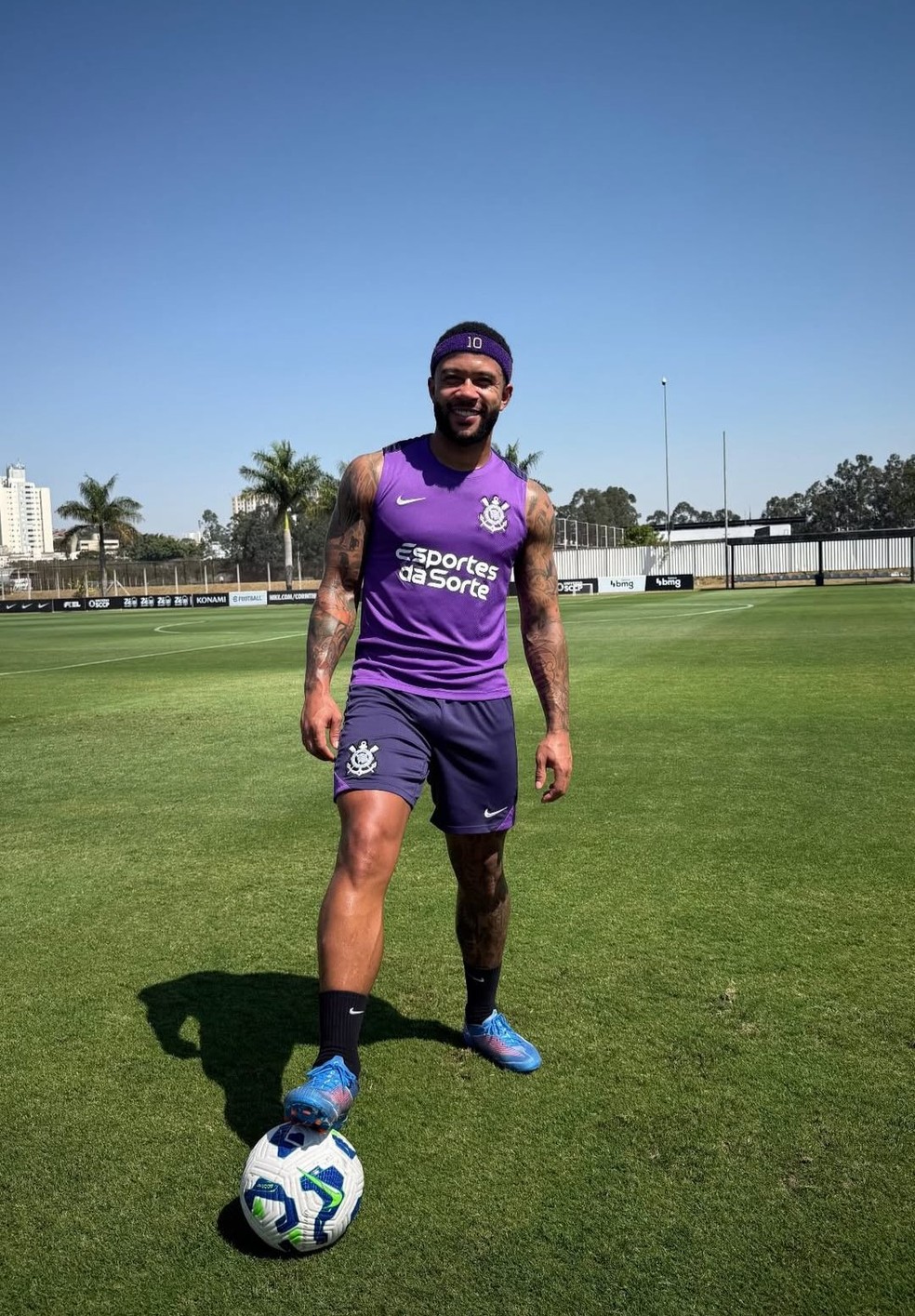 O atacante Memphis Depay deu um passo importante em sua recuperação de lesão muscular na coxa direita. Nesta sexta-feira, ele foi a campo no treino do Corinthians e fez exercícios com bola.