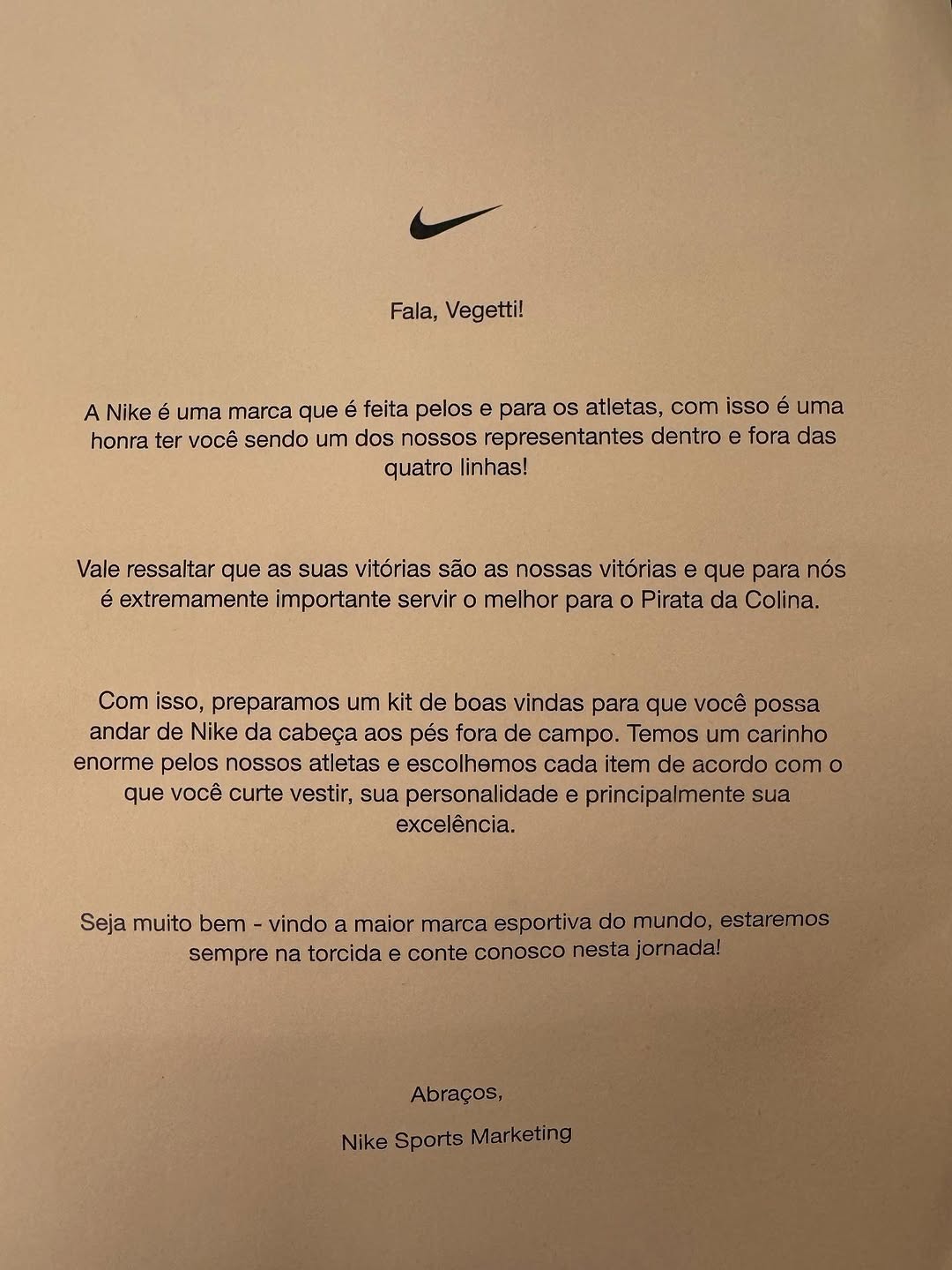 Vegetti passa a ser patrocinado pela Nike, futura fornecedora do Vasco