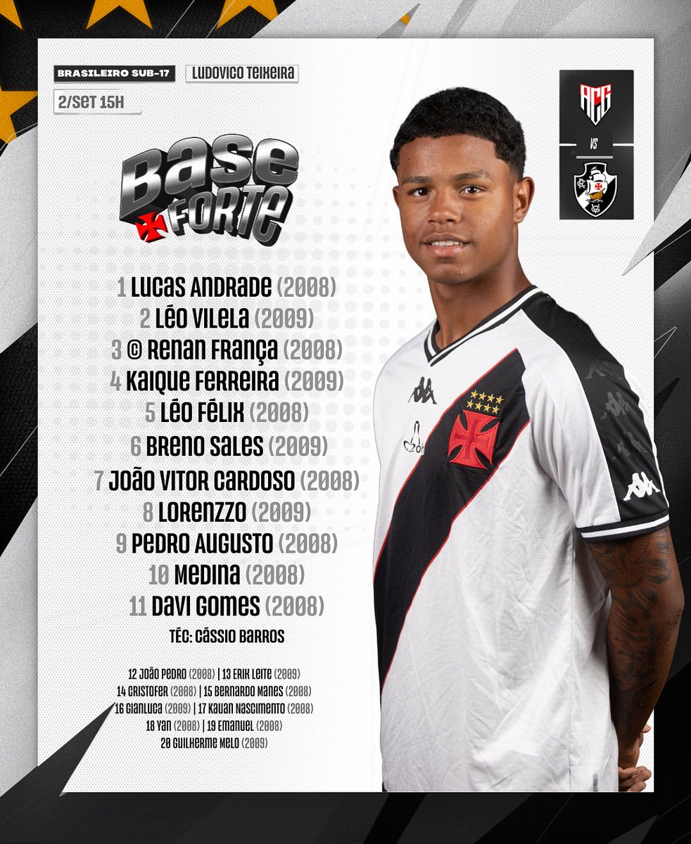 Sub-17: Confira a escalação do Vasco para o jogo contra o Atlético-GO