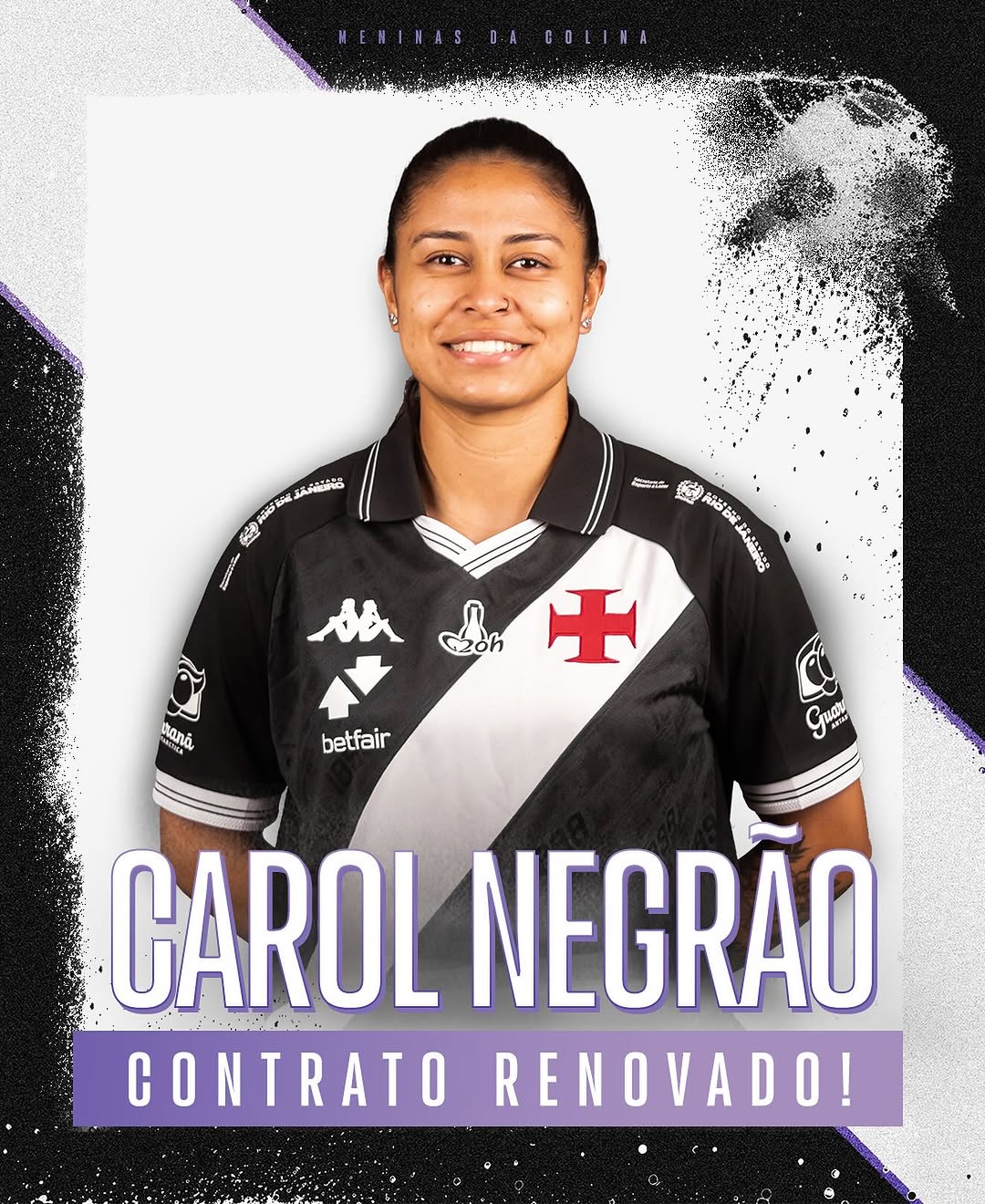 O Vasco da Gama confirmou a renovação de contrato da atacante Carol Negrão, de 25 anos, para a sequência da temporada. A jogadora chegou ao clube em 2021 e está em sua quarta temporadadefendendo as Meninas da Colina.