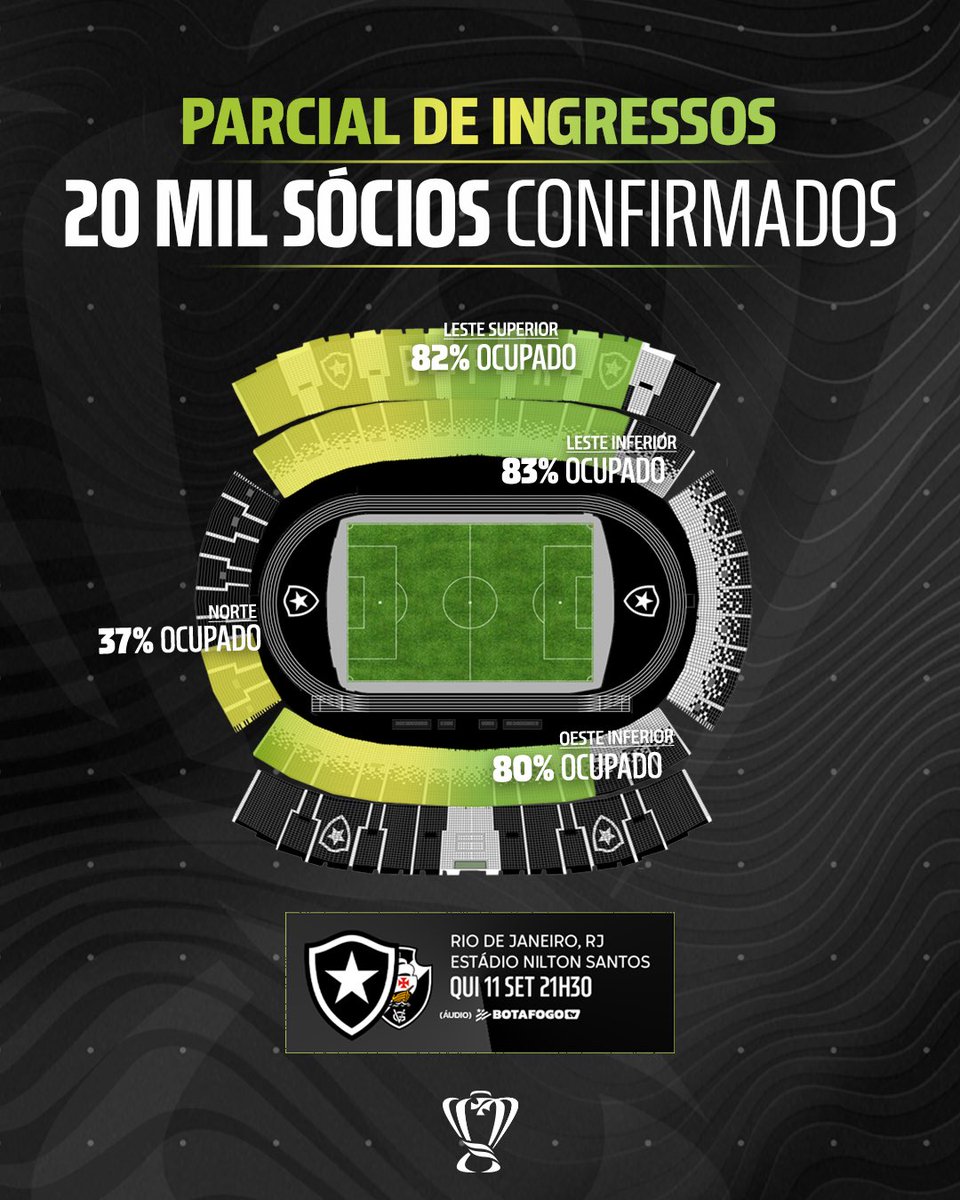 Somos 2️⃣0️⃣ mil sócios @Camisa7Botafogo confirmados no duelo com o Vasco! Acesse