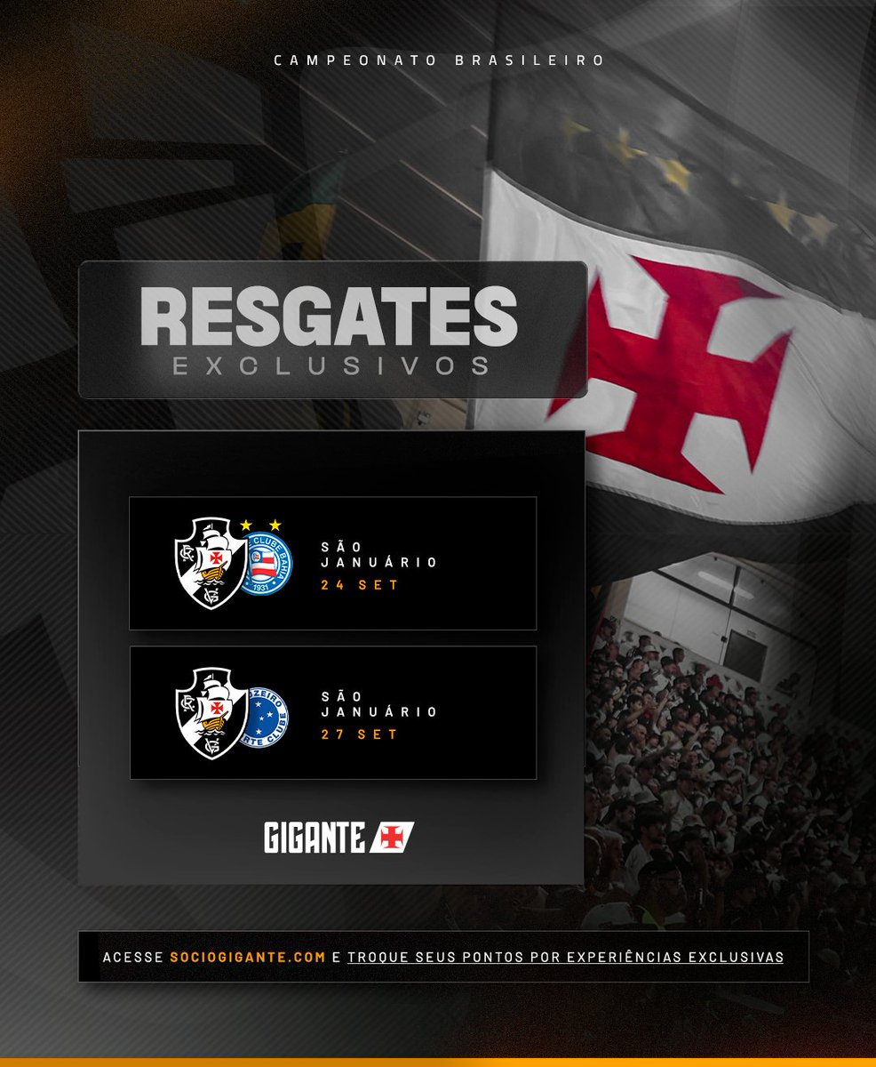 ⚠️ Atenção para a programação de ABERTURA DE RESGATES pros jogos diante de Bahia (24/09) e Cruzeiro (27/09).