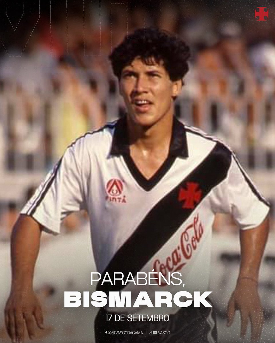 🏆💢 Campeão Brasileiro e tricampeão carioca pelo Vasco, Bismarck completa mais um ano de vida nesta quarta.