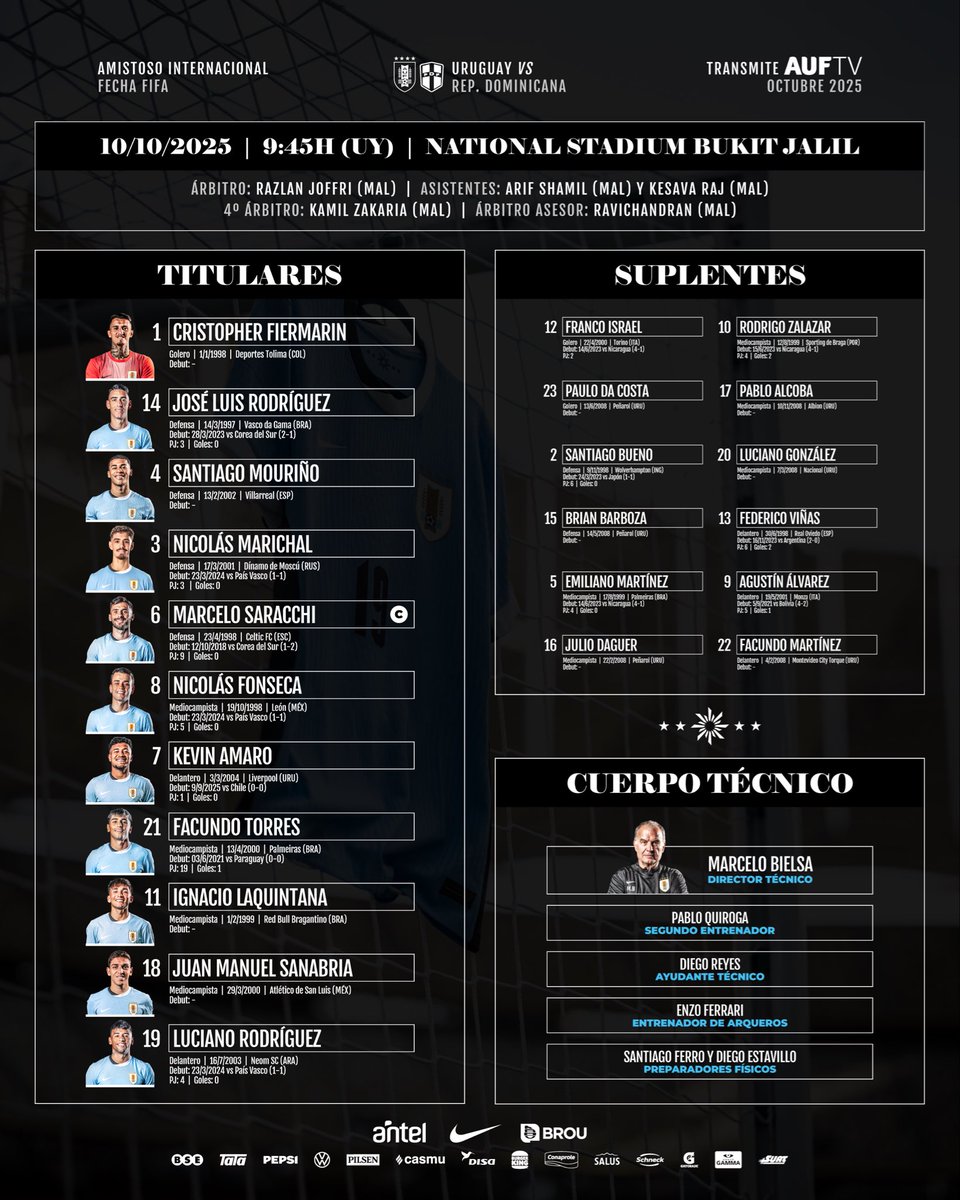 🚨 ATENCIÓN | Uruguay para enfrentar a República Dominicana a las 09:45 en Malasia.