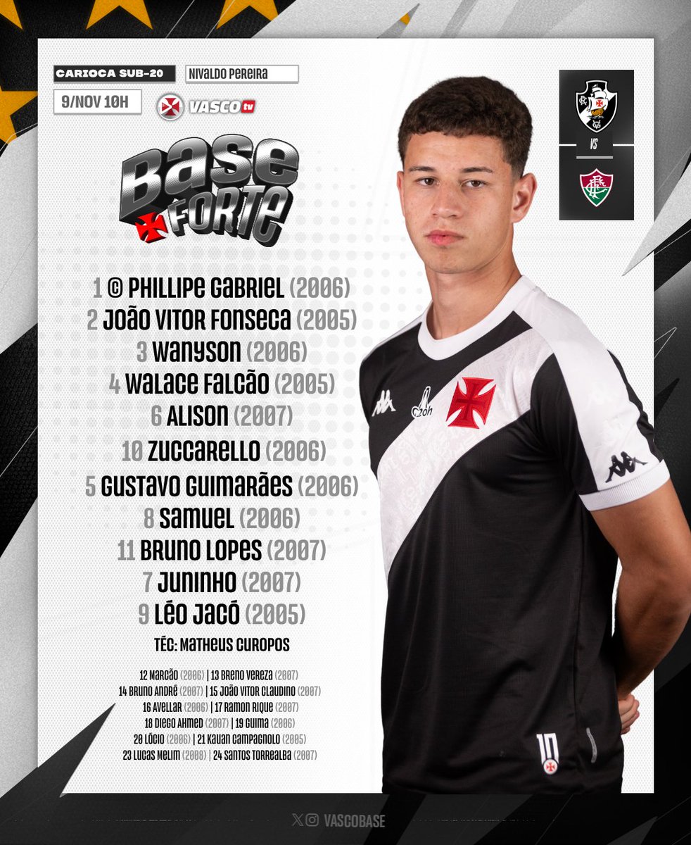 O Sub-20 está escalado para o duelo contra o Fluminense, às 10h, pela volta das semifinais do Carioca! 💢