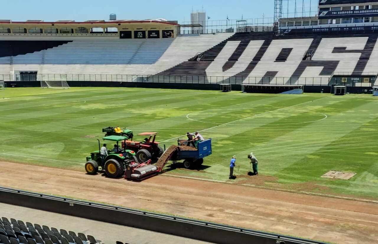 A diretoria do Vasco aproveitou a pausa do Campeonato Brasileiro durante a Data Fifa para iniciar uma importante reforma em São Januário. A saber, a troca completa do gramado. A expectativa, aliás, é a de que o novo piso esteja pronto para o duelo contra o Internacional, na sexta-feira (28/11).