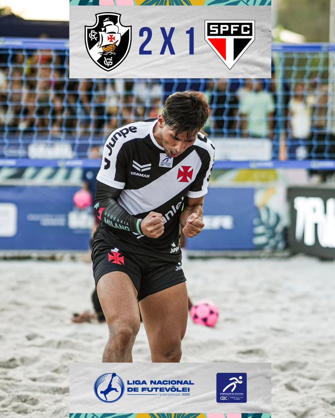 Pela 8ª rodada da 1ª fase da Liga Nacional de Futevôlei, o Vasco derrotou o São Paulo por 2 sets a 1 na tarde desta 6ª-feira em Guapimirim (RJ).