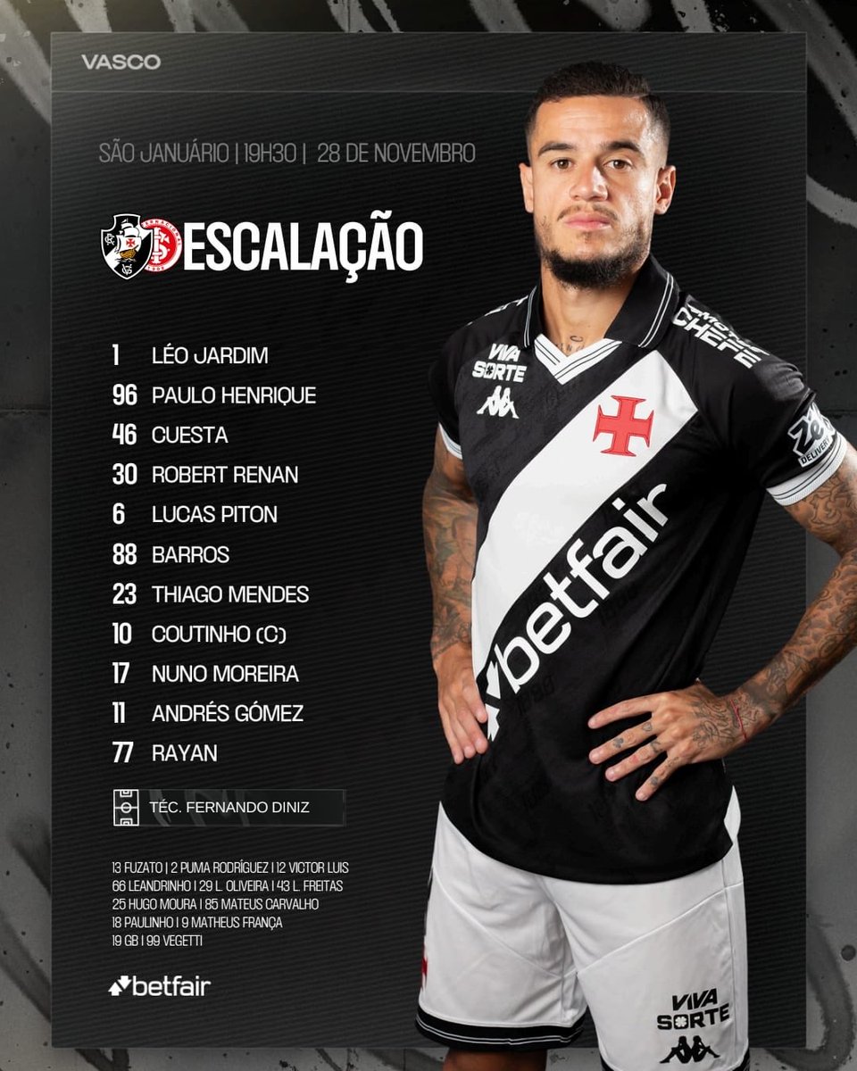 O 𝑽𝒂𝒔𝒄𝒐 𝒅𝒂 𝑮𝒂𝒎𝒂 está escalado para o jogo desta noite! 📋💢