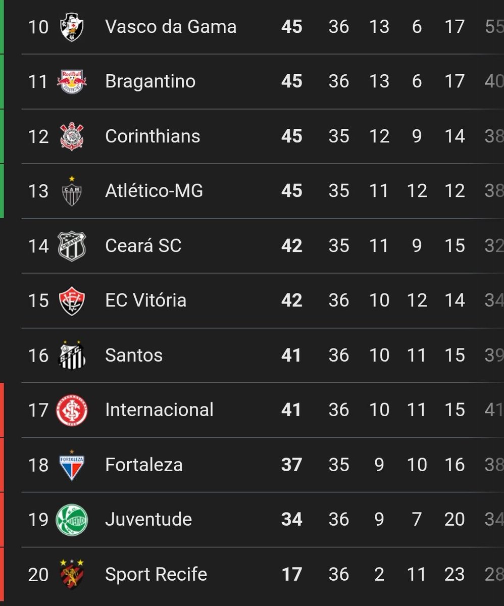 E de quebra, o Vitória saiu do Z4 e colocou o Inter.