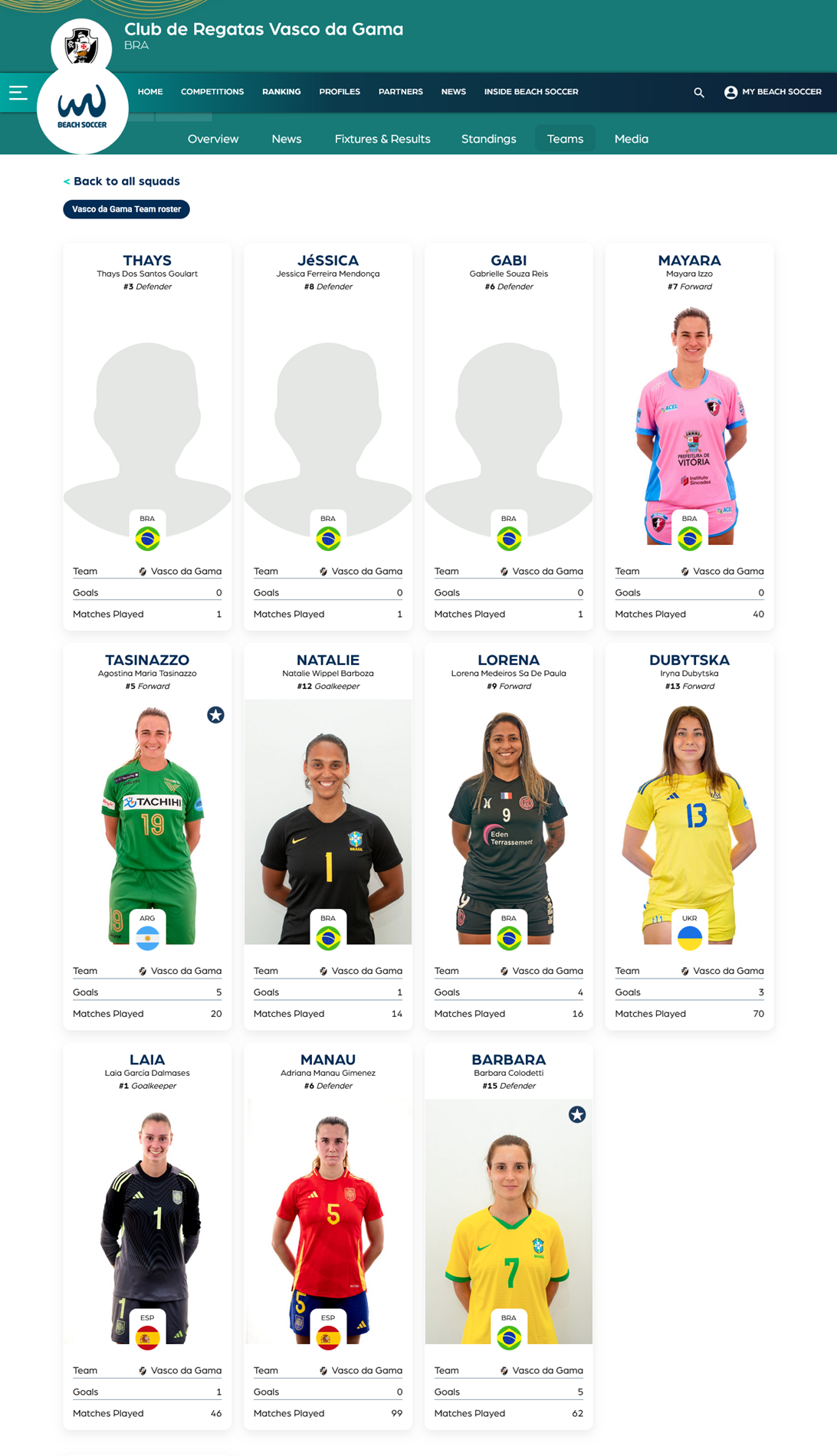O Vasco tem em seu elenco para a Americas Winners Cup, competição de Beach Soccer Feminino que está sendo disputada em El Salvador, 3 das 10 melhores jogadoras do mundo de 2024: a defensora espanhola Adriana Manau Giménez (3ª), a defensora brasileira Barbara Colodetti (5ª) e a atacante ucraniana Iryna Dubytska (9ª). O Gigante da Colina estreia nesta 3ª-feira, às 13h15, contra o Virginia Beach-EUA, com transmissão pelo site beachsoccertv.com.