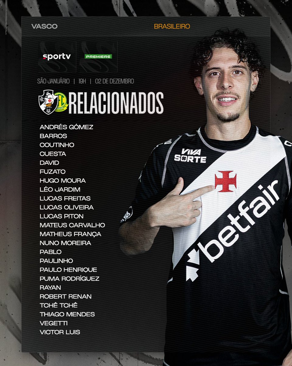 📋 Relacionados para a última partida do Brasileirão em São Januário! 🏟️💢