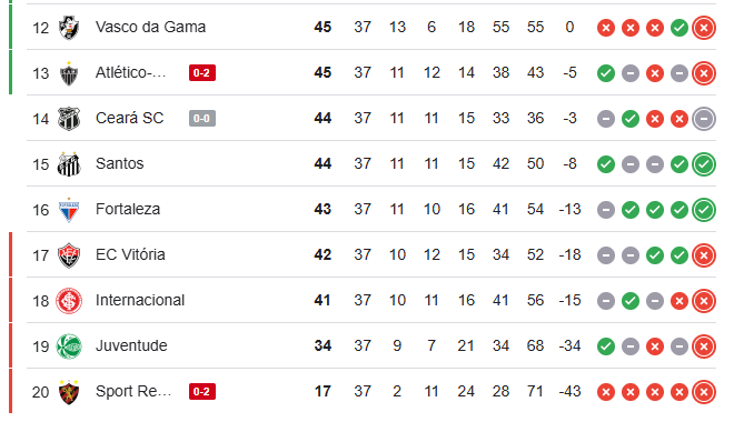 VASCO ESTÁ MATEMATICAMENTE LIVRE DO REBAIXAMENTO NO CAMPEONATO BRASILEIRO