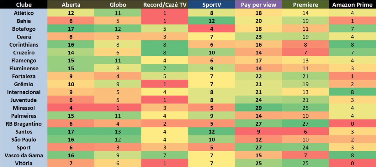O "Tabelão" de transmissão dos times no Brasileirão.