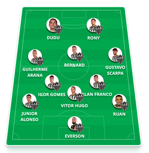 Time provável: Everson; Ruan Tressoldi (Saravia), Vitor Hugo e Alonso (Ivan Román); Gustavo Scarpa, Alan Franco, Igor Gomes, Bernard e Arana; Dudu e Rony (Hulk)