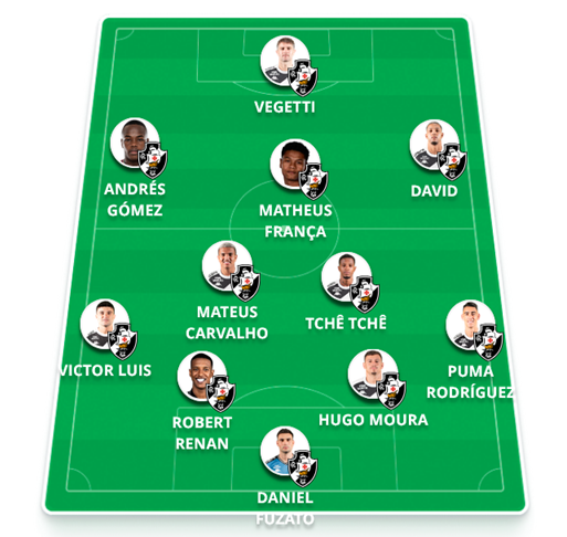 Time provável: Fuzato, Puma, Hugo Moura, Puma, Victor Luís, Mateus Carvalho, Tchê Tchê, Matheus França, David, Andrés Gómez e Vegetti.