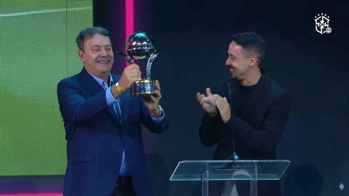 Pedro Lourenço, dono do Cruzeiro e que representava o atacante Kaio Jorge, recebeu o Troféu Roberto Dinamite diretamente das mãos de Rodrigo Dinamite, filho do eterno Bob.