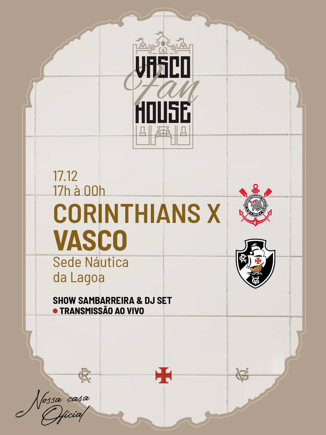 A Vasco Fan House recebe a torcida cruzmaltina para viver a emoção do 1º jogo da Final da Copa do Brasil, no dia 17 de dezembro, na Sede Náutica da Lagoa.