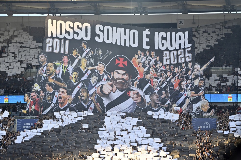 Um dos bandeirões 3D destacou os anos de 2011 - ano do único título do Vasco na Copa do Brasil - e 2025, assim como jogadores integrantes dos dois elencos. Além disso, a peça tem a frase "nosso sonho é igual", trecho que faz parte da música "Amanhecer".