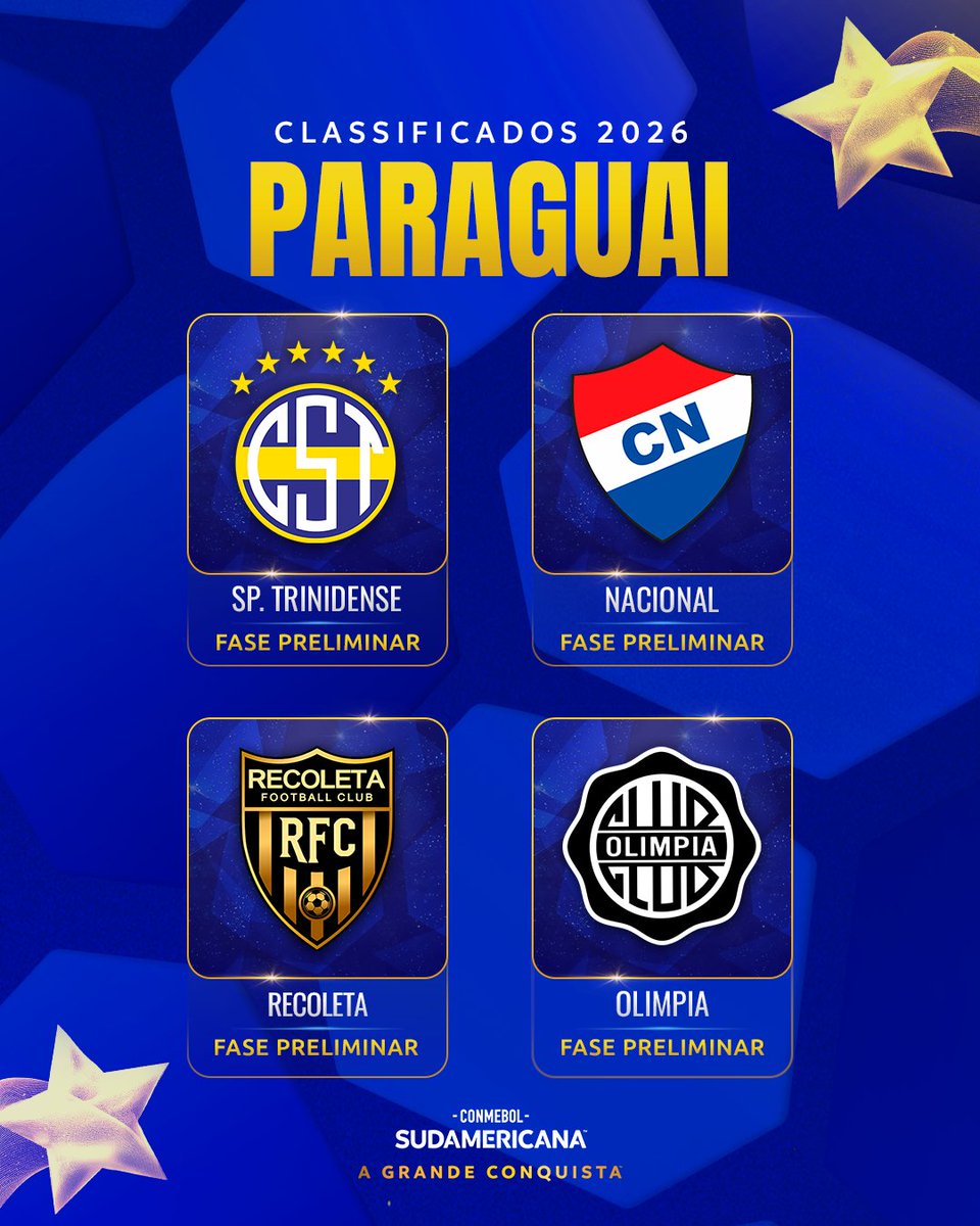 🇵🇾 Os 4️⃣ representantes do Paraguai na próxima edição da CONMEBOL #Sudamericana!