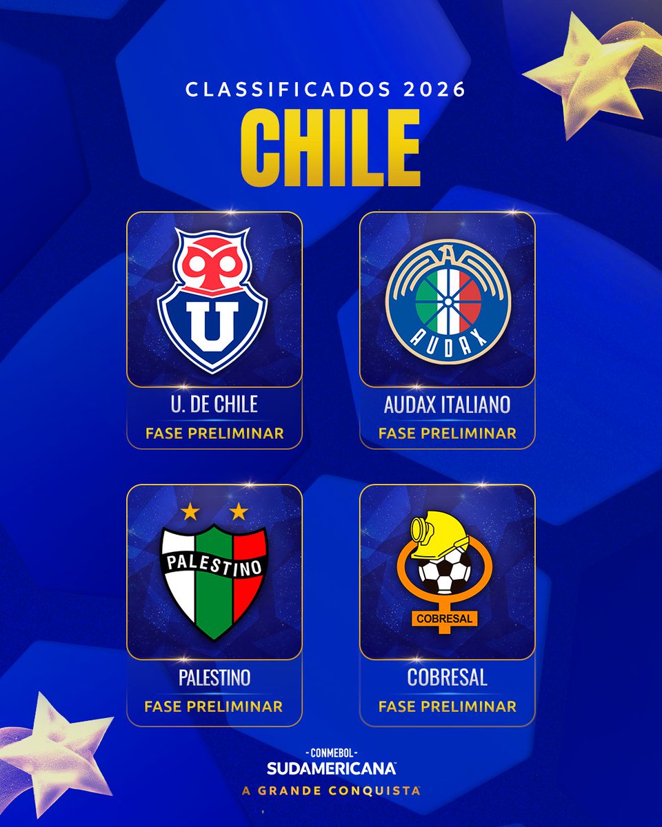🇨🇱🏆 Os 4⃣ clubes que irão representar o Chile na CONMEBOL #Sudamericana 2026 estão confirmados!