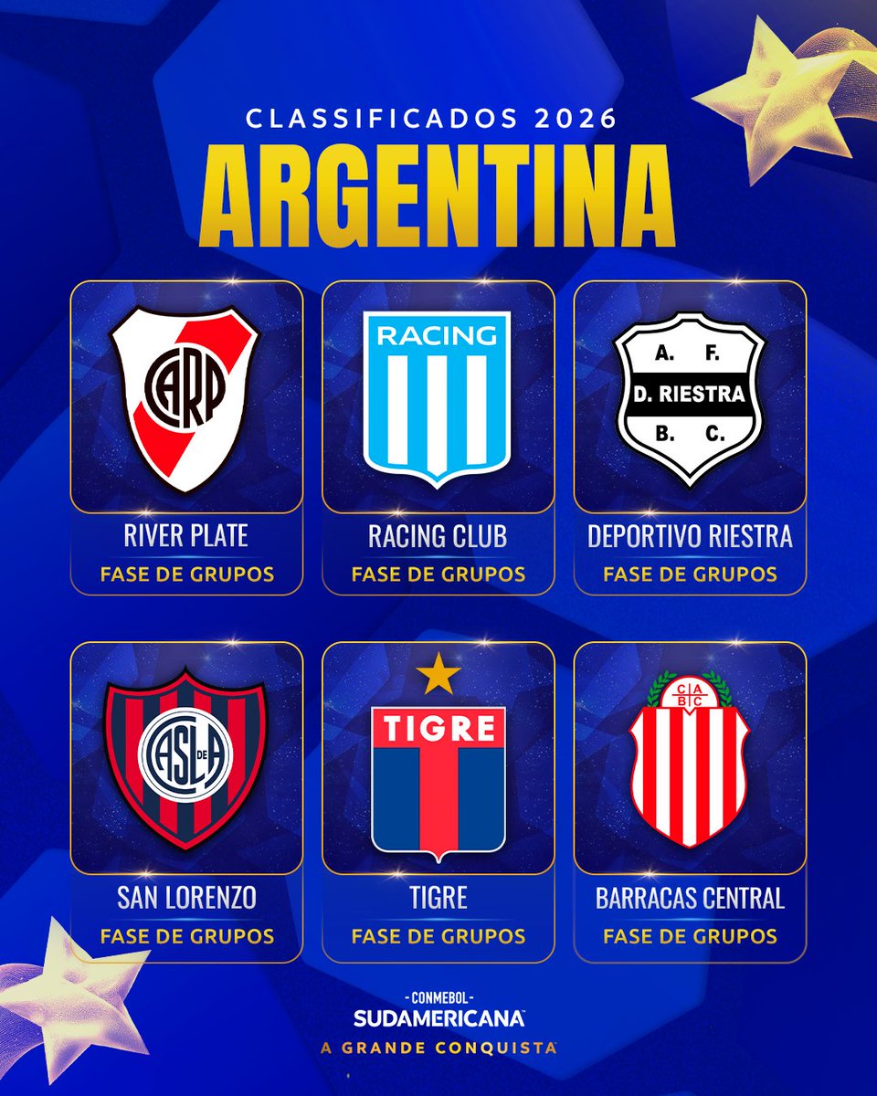 🇦🇷🏆 Argentina pela #GrandeConquista! Os 6⃣ clubes do país na CONMEBOL #Sudamericana 2026.