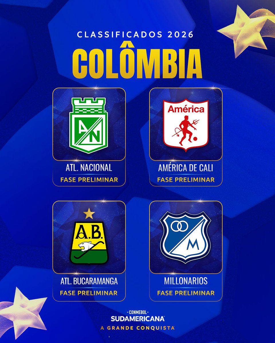 🇨🇴🏆 Os 4⃣ clubes da Colômbia classificados para a CONMEBOL #Sudamericana 2026!
