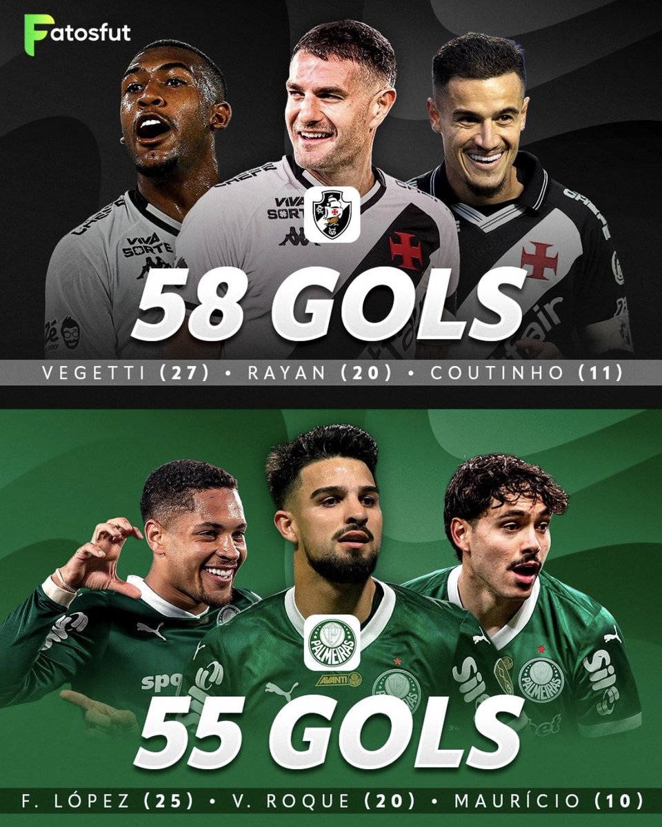 Trio do Vasco foi o que mais marcou gols em 2025 entre os times da Série A