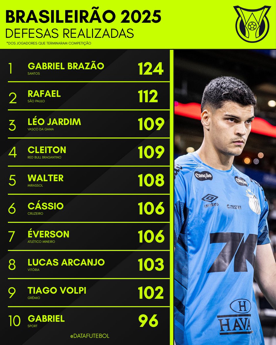 Os goleiros com mais DEFESAS no Brasileirão 2025!